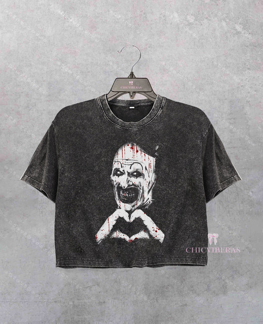 Art The Clown Terrifie Scary Horror Clown Crop Shirt