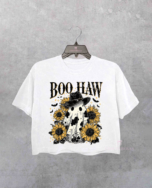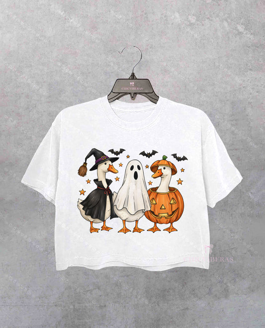 Halloween Boo Ghost Goose Crop Shirt