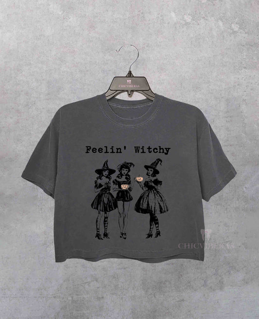 Witch Halloween Fleein' Witchy Crop Shirt