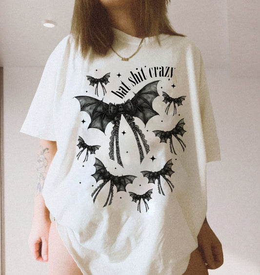 Halloween Bat Gothic Coquette Bow Crop Shirt / Tee