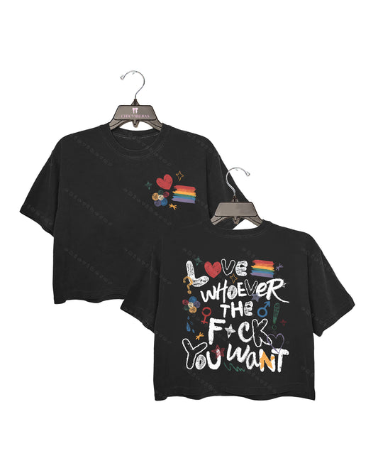 LGBTQ Love Pride Month Love Whoever You Want Crop Shirt