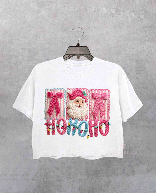 Ho Ho Ho Faux Yarn Santa Hat Crop Shirt
