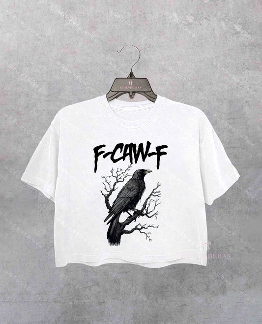 F-Caw-F Funny Crow Black Crow Moonlit Raven Crop Shirt