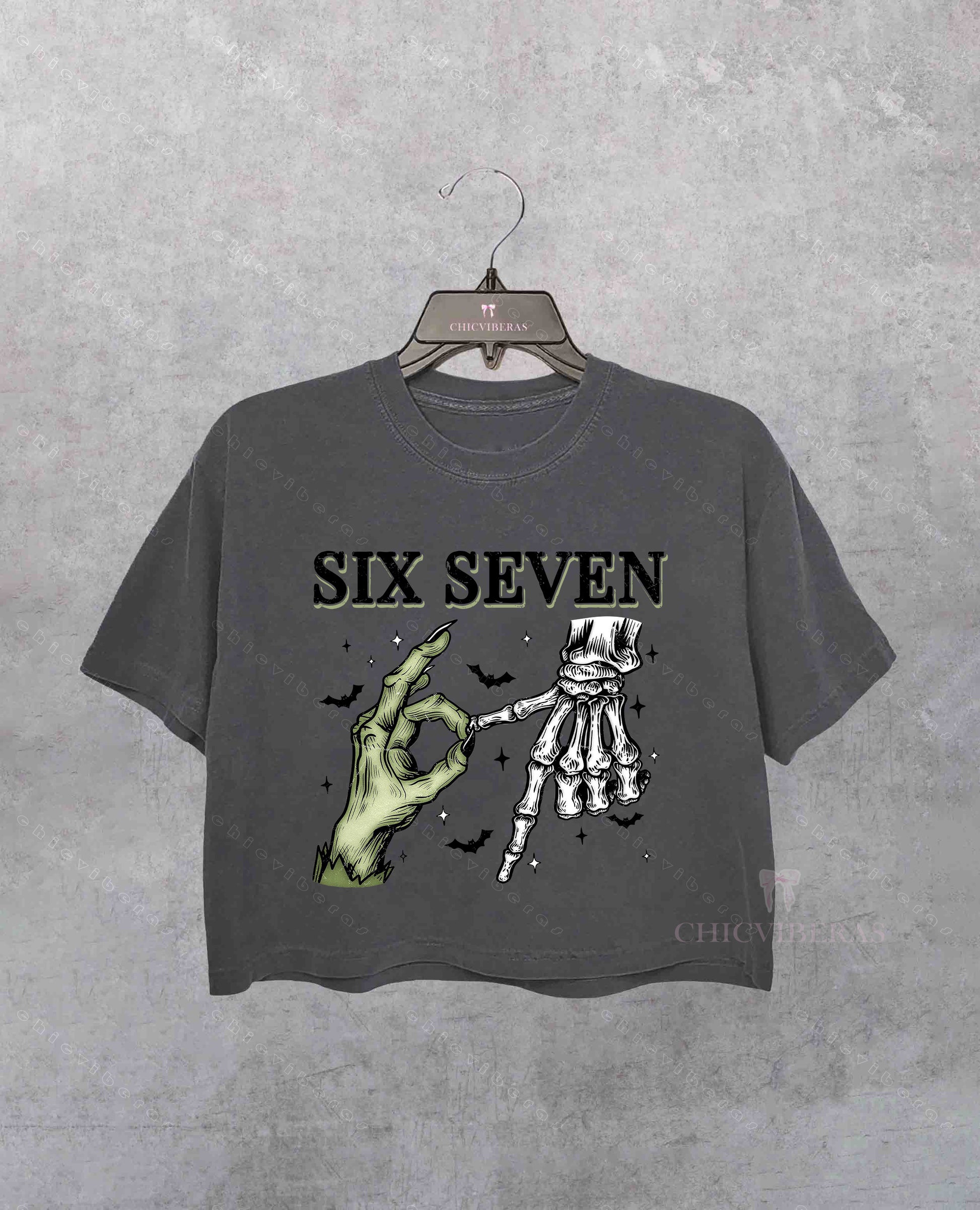 Six Seven 6 7 Meme Funny Witch Skeleton Hands Crop Shirt